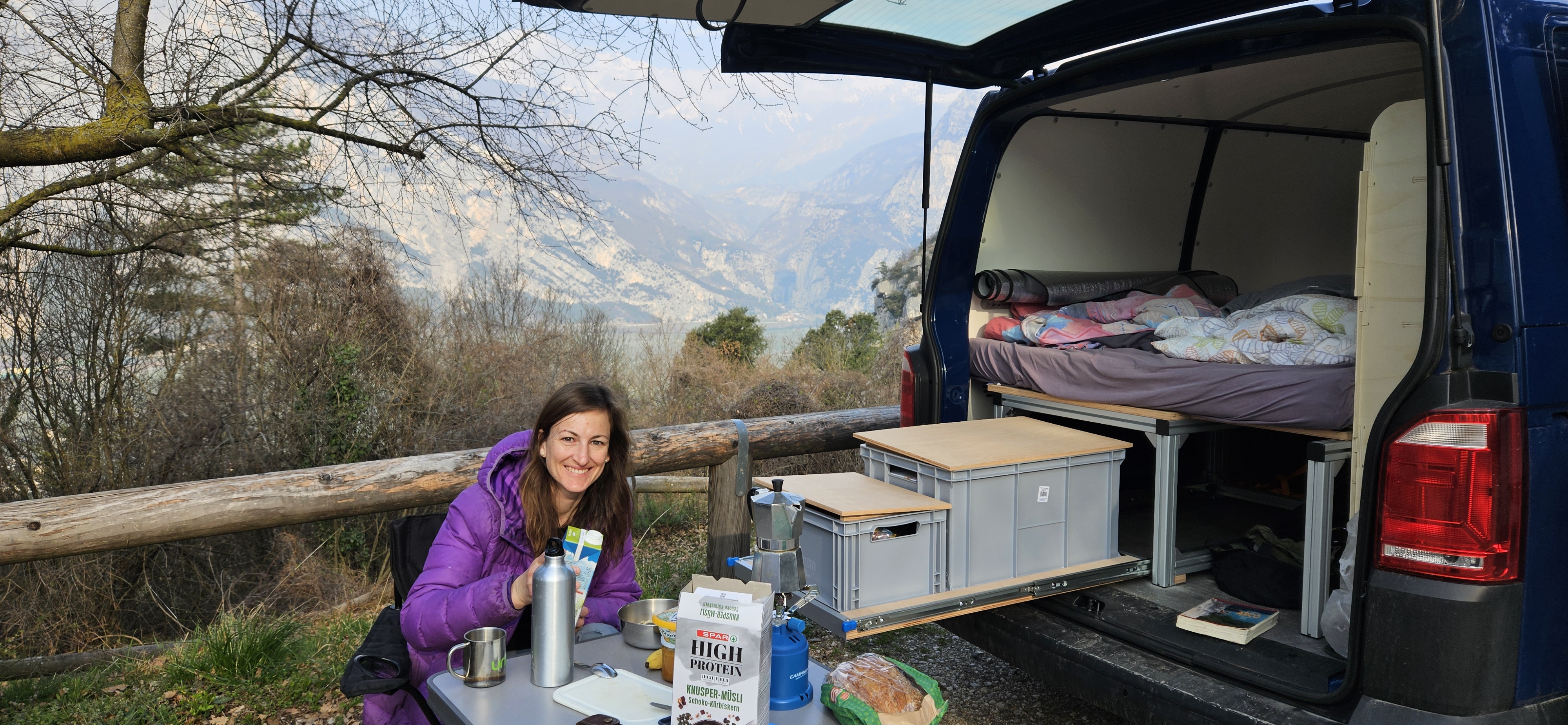 So geht es mit unserem neuen Dach, voll bepackt und voller Vorfreude um 17.30 Uhr in Grinzens los. Ein Pizzazwischenstopp in Lermoos und dann geht es bis auf eine Schrecksekunde (wir dachten das Kinderfahrrad sei weg) und einer etwas unentspannten kleinen Maus sehr gut bis nach Wedemark (in der Nähe von Hannover). Hier verbringen wir eine kurze (02.30 Uhr – 06.30 Uhr), aber gute Nacht. Der Parkplatz ist perfekt, auch am Morgen haben wir Sonnenschein und Wald zum Erkunden. So geht es dann entspannt die letzten Meter bis nach Travemünde, wo wir in der Nähe vom Fährhafen beim Silkteich einen schönen Tag verbringen. Mit der Nils Holgersson Fähre geht es am Abend mit zwei braven, aber erledigten Kindern los in Richtung Schweden, welches uns am Morgen mit Sonne begrüßt und wir am ersten Rastplatz mit Spielplatz und Meer einfach nur dankbar dafür sind, 8 Wochen ohne viel Plan, aber viel Zeit vor uns zu haben.