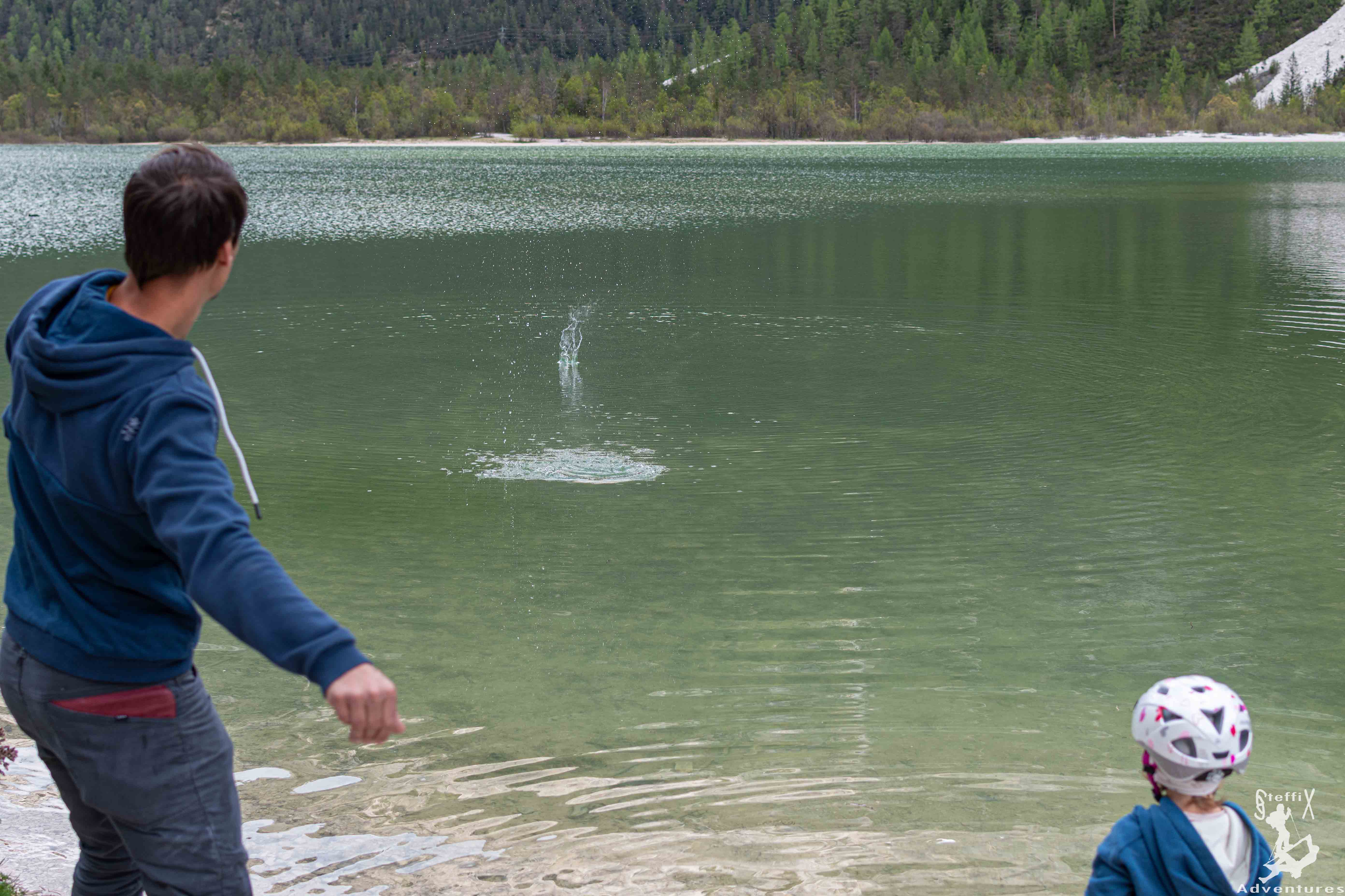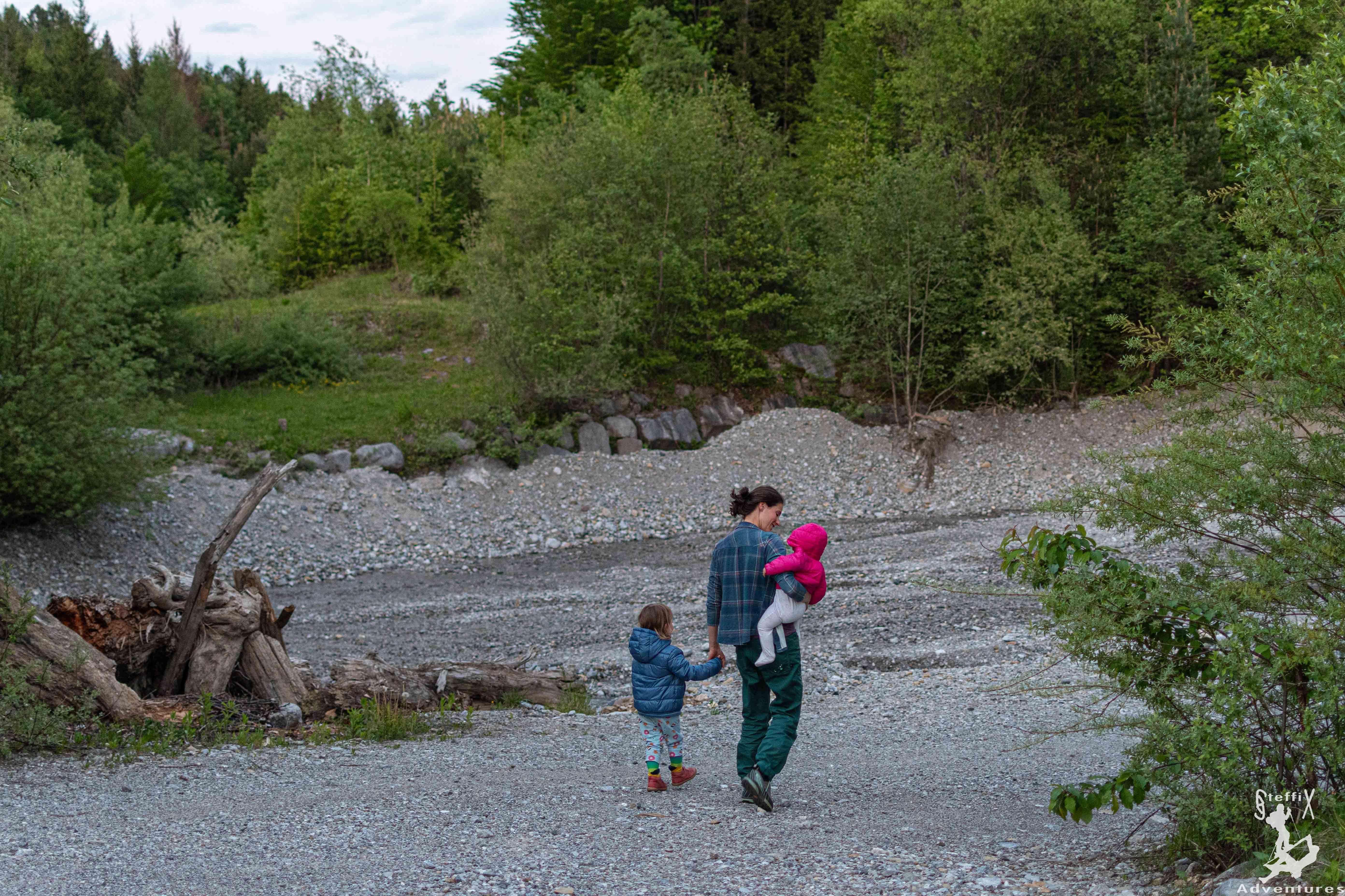 Bei der ersten Reise hatten wir ein Krabbelkind mit dabei, dieses Mal ein Kleinkind das schon Laufen konnte. Wir haben davor oftmals diskutiert, was denn wohl besser sei. Nach der Reise, vor allem im Norden wo es dennoch, trotz Traumwetter, öfters auch feucht und nass war, können wir ohne zu überlegen sagen, dass es für uns angenehmer war, dass die Kleine bereits laufen konnte. Man ist einfach doch viel weniger am Boden unterwegs, was durchaus viele Vorteile hat. Es werden etwas weniger Steine und sonstige Dinge gefunden, die in den Mund gestopft werden können und die Kids sind nicht sofort überall nass, wenn es regnet, da das Gatschgewand laufende Kinder einfach noch besser trocken hält als krabbelnde. Zudem war unser Glück, dass die Kleine noch nicht lange davor das Gehen gelernt hat, so war sie so zufrieden, weil sie die Welt endlich stehend erkundschaften konnte.