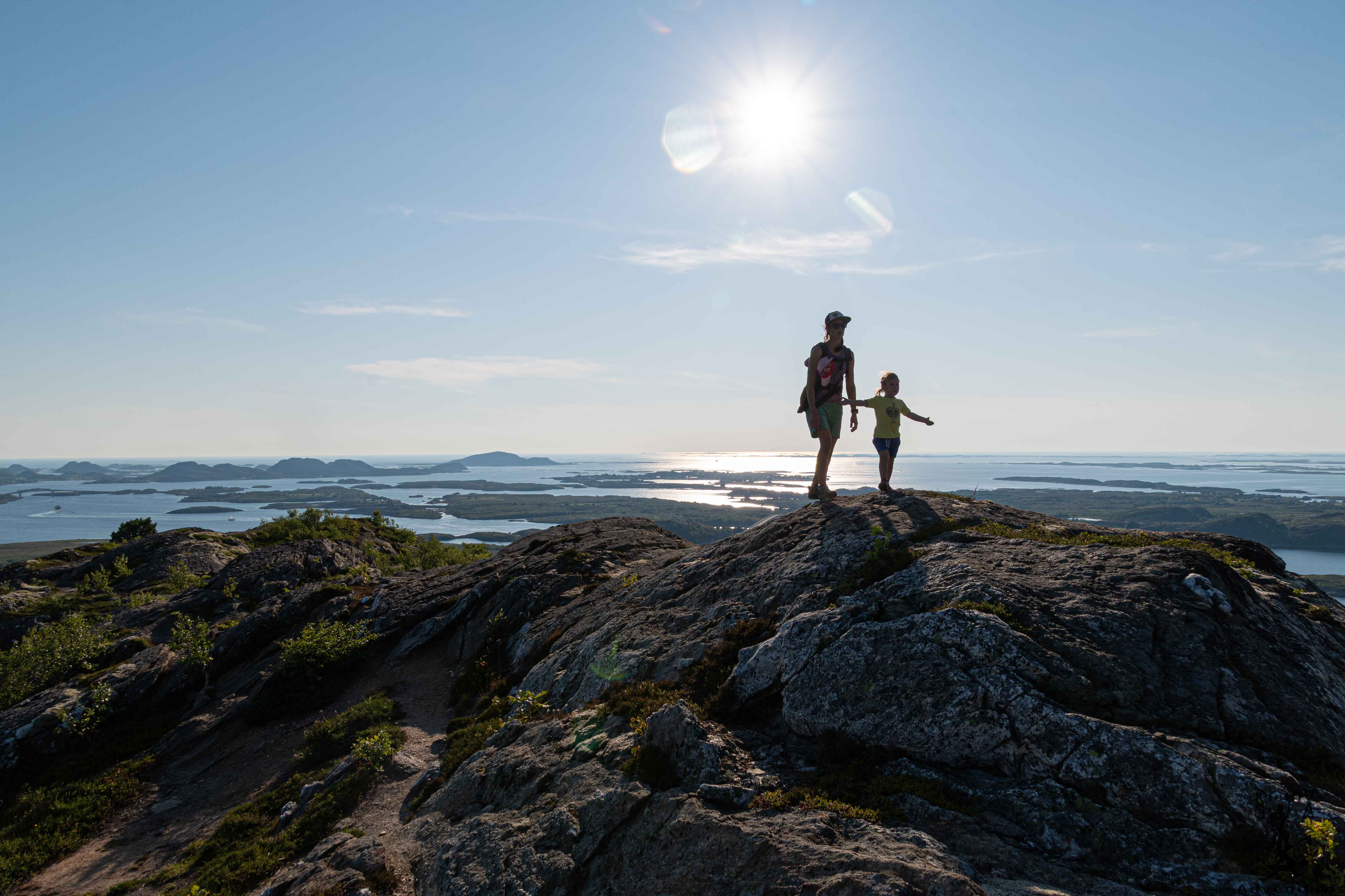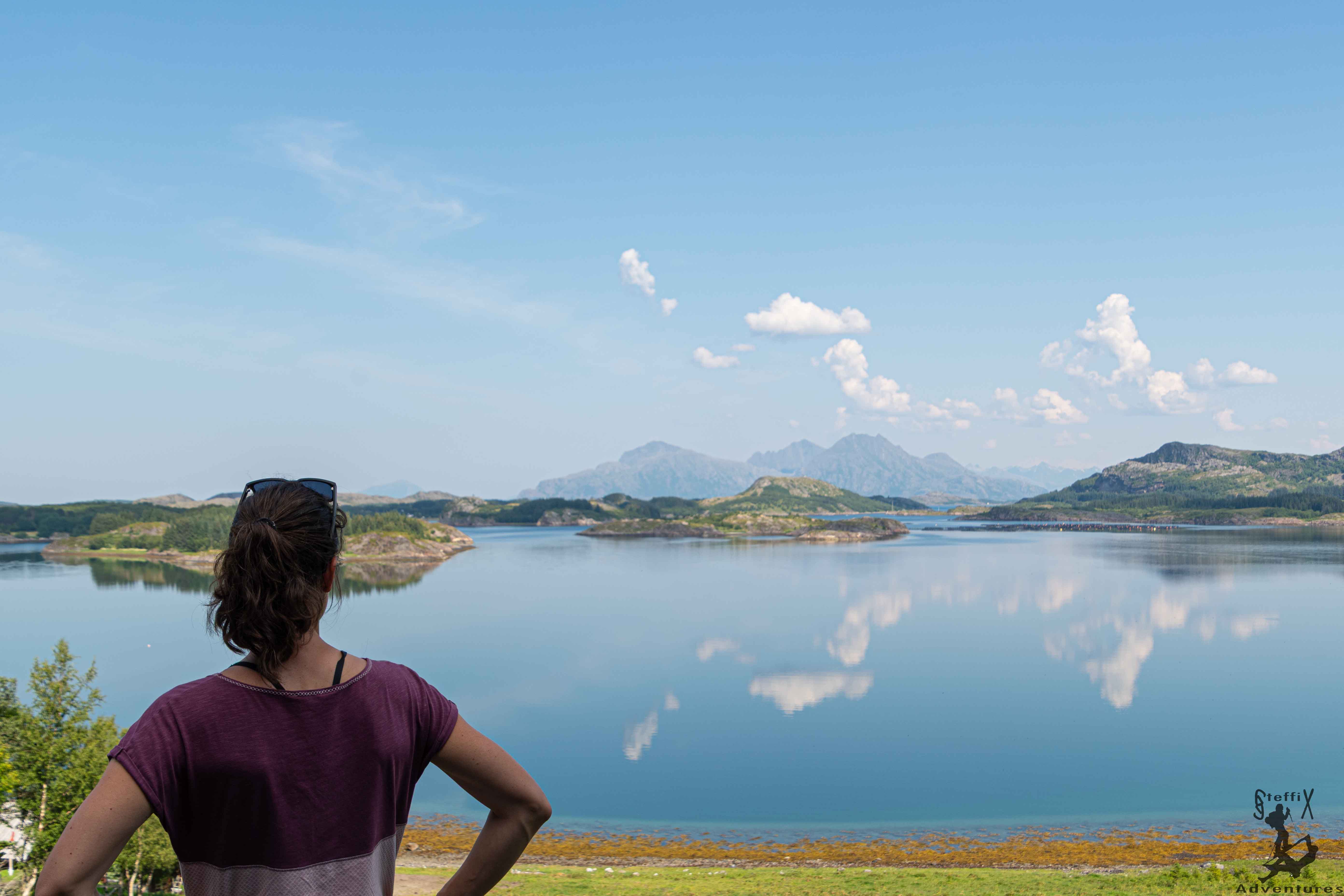 Aufgrund des Hochs im Norden beschließen wir dieses Jahr Sandnessjoen und Donna mitzunehmen und es war die beste Entscheidung. Wir müssen zwar teilweise aus der Sonne fliehen, weil es viel zu heiß ist, sagen manche geplanten Wanderungen ab und sind stattdessen auf den wunderschönen Sandstränden, weil außer Baden alles zu heiß ist. Den Fischen ist es zum Glück nicht zu heiß und sie beißen gerne und viel, vor allem wenn die Große das „Fisch-halt-dich-fest“-Lied singt. Meist finden wir schattige Schlafplätze, wenn jedoch nicht, ist es tatsächlich zu warm im Bus und die Kids können auch vor 23.00 Uhr nicht schlafen und alle sind um 06.00 wieder wach, die Sonne geht ja quasi nie unter und das kann bei 30 Grad dann auch anstrengend sein. Wir reklamieren allerdings nicht und genießen das Wetter und machen stattdessen eine traumhafte und absolut gelungene Abendwanderung auf den Akvikfjellet.