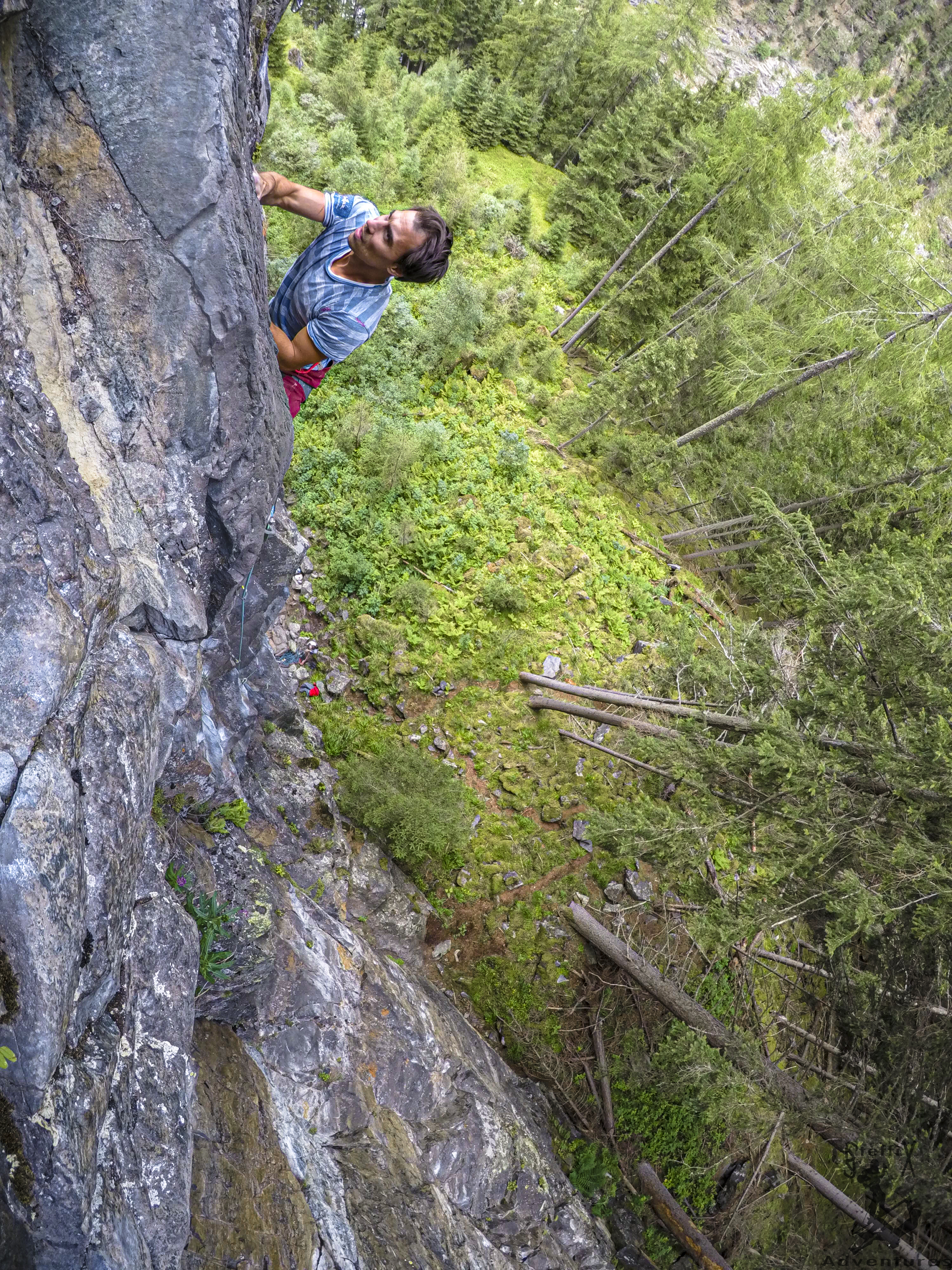 Gegen Nachmittag verließen wir das Gebiet und machten uns auf dem Weg Richtung Huben, dem Ausgangspunkt für die Mehrseillängentour „Heimspiel“ auf den Hahlkogel, die wir für den Sonntag geplant hatten. Die unsichere Wetterprognose ließ uns aber von diesem Plan Abstand nehmen. Wir suchten uns daher ein nettes Plätzchen, übernachteten bei beeindruckendem Sternenhimmel inkl. Milchstraße und machten uns am nächsten Tag auf in das Klettergebiet Aschbach, welches Neuland für uns war. Die Kletterei dort kann als fordernd, aber mindestens genauso schön wie ihn Niederthai beschreiben werden. Wir verausgabten uns auch dort wieder, obwohl wir den Vortag schon recht spürten. Um 15 Uhr saßen wir bei Josi beim Kaffee und spürten die ersten Regentropfen. Es schien als hätten wir die richtige Entscheidung getroffen und als dann das Gewitter so richtig rumste, waren wir wirklich heilfroh, gerade nicht auf dem Hahlkogel zu sein. Glück gehabt!