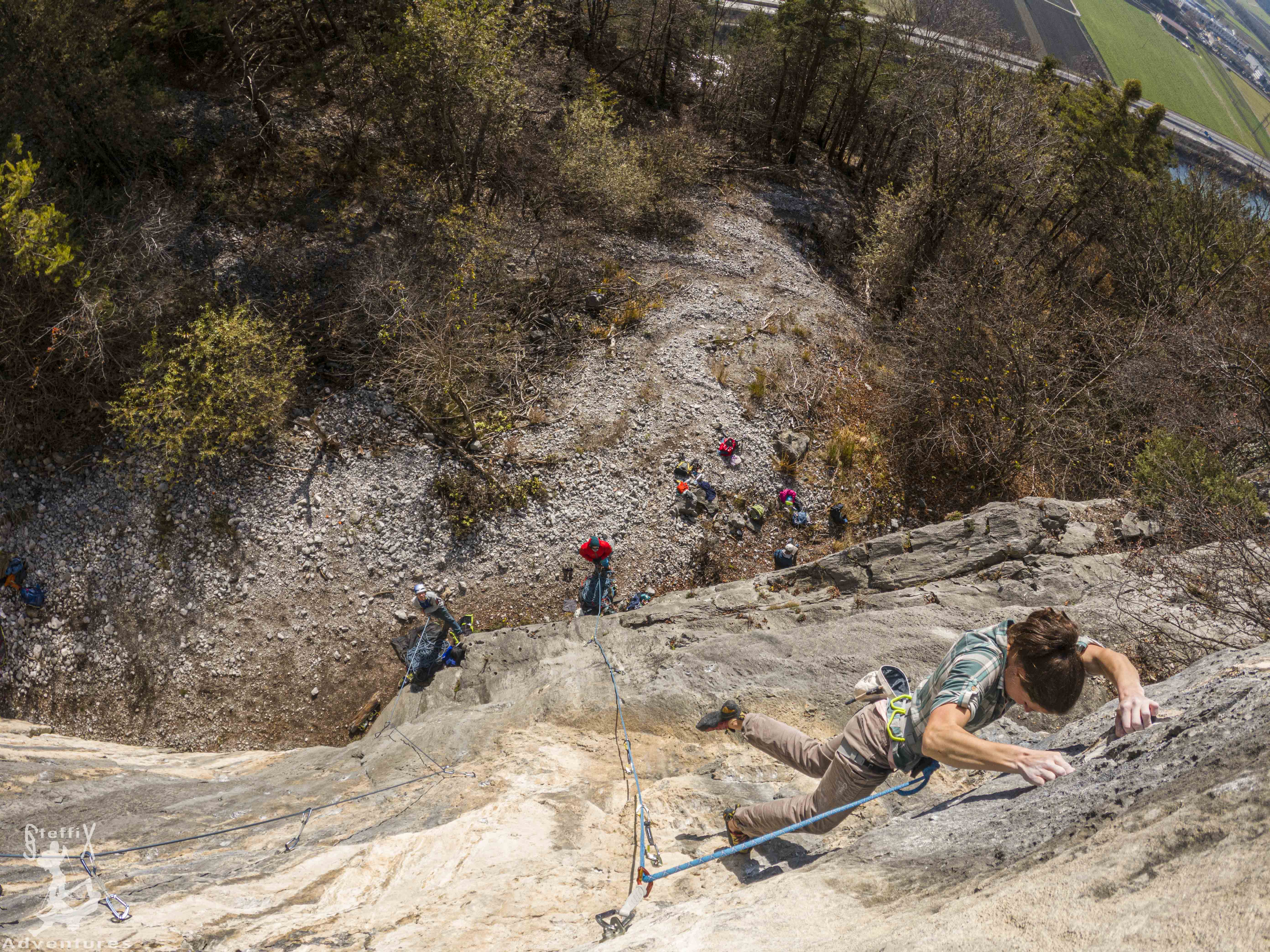 Am Samstag ging es an die Martinswand. Dieses Mal ins Alpinmagazin, welches nicht so stark frequentiert sein sollte wie die Galerie. Es füllte sich zwar nach und nach auch, aber man konnte dennoch immer das klettern, worauf man Lust hatte. Der Klettertag startete für Steffi nicht so erfreulich, war die „Aufwärmroute“ so gar nicht ihr Stil. Der Ärger darüber war allerdings am Ende des Klettertages wieder ganz vergessen, haben dann doch (wie immer) die schönen Seiten des „an der Wand seins“ überwogen. Wir sogen die Sonne in vollen Zügen auf und genossen die Wärme an der Wand. Die Jause gabs nach getaner Arbeit, bereits im Schatten. Die Kolonne die von der Galerie runterspazierte bestätigte uns in unserer Klettergebiets-Entscheidung.