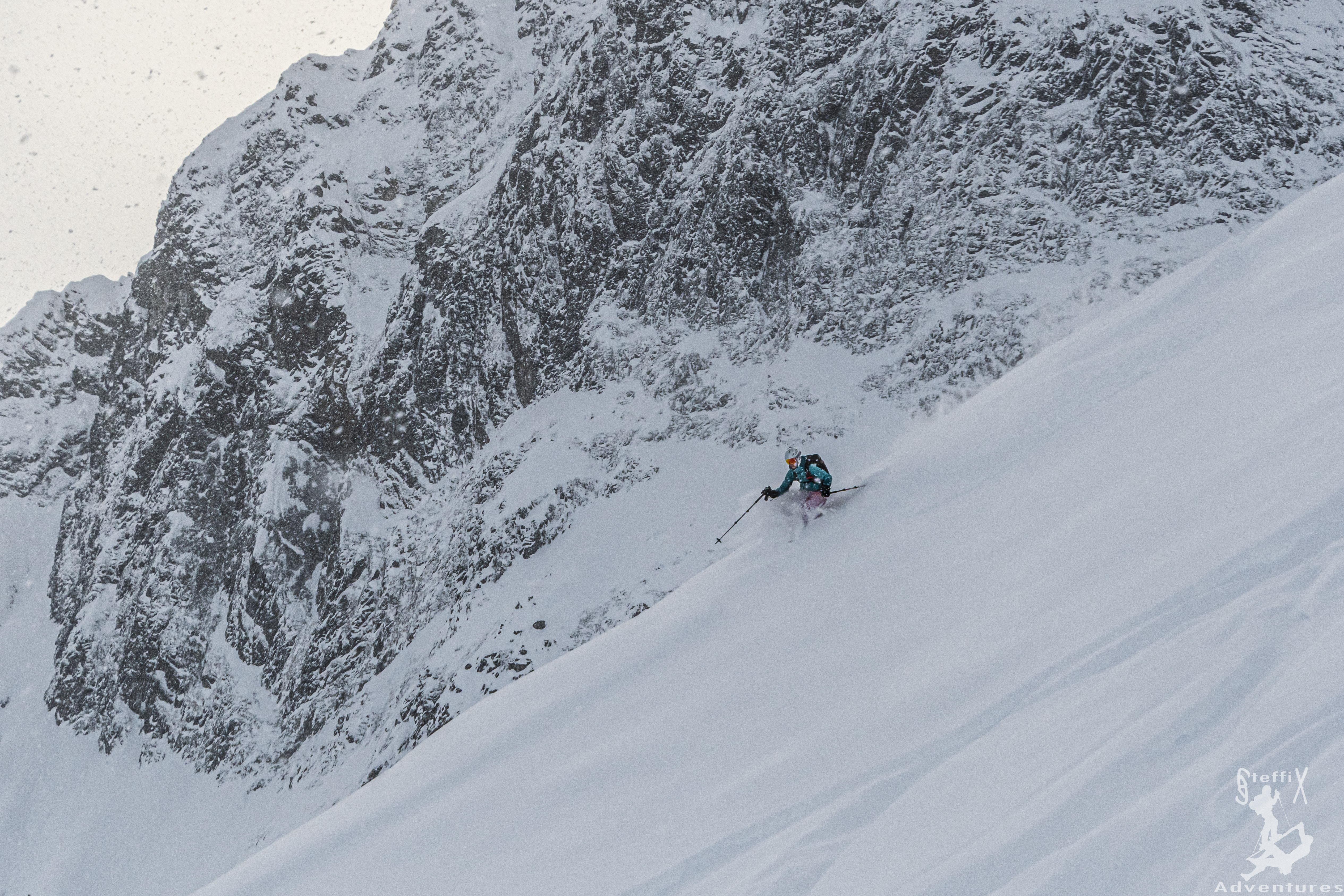 Zusammen mit unserer äußerst netten Bekanntschaft ging es dann nicht über die Aufstiegspur retour, sondern direkt vom Skidepot südlich hinab. Und als wäre es bestellt gewesen, riss genau jetzt die Wolkendecke auf und wir konnten bei wesentlich besserer Sicht als zuvor die noch nur wenig verspurten Hänge hinabgleiten. Und gleiten ist das absolut richtige Wort, denn der Schnee war ein Traum. Bis zum Auto sollte er so bleiben und wir sagen an dieser Stelle abermals „Danke!“ an unsere spontane Begleitung, die uns diese Variante gezeigt hat. Vor Weihnachten solche Skitouren zu erleben ist schon etwas Feines, gerne mehr davon 😊