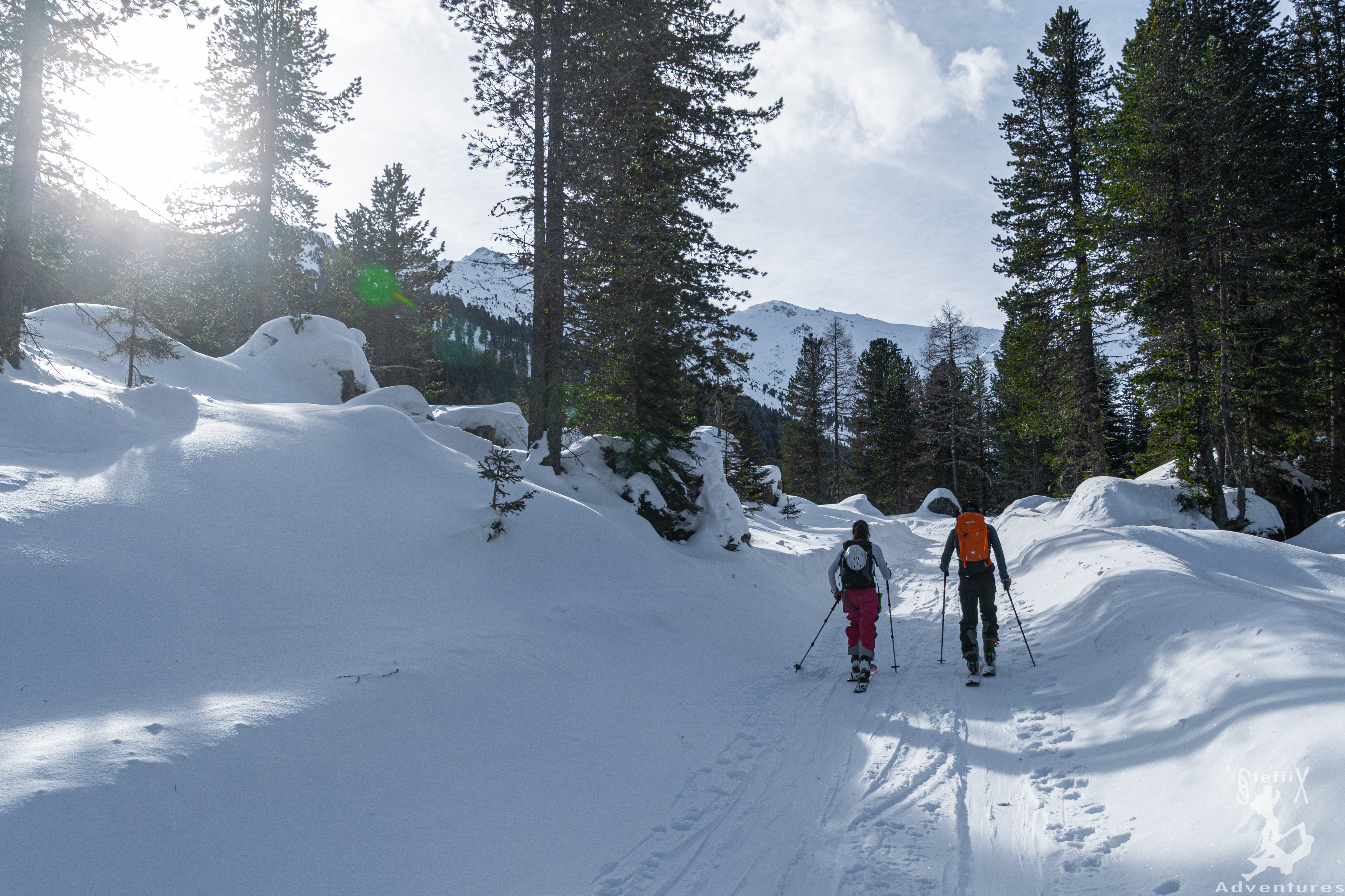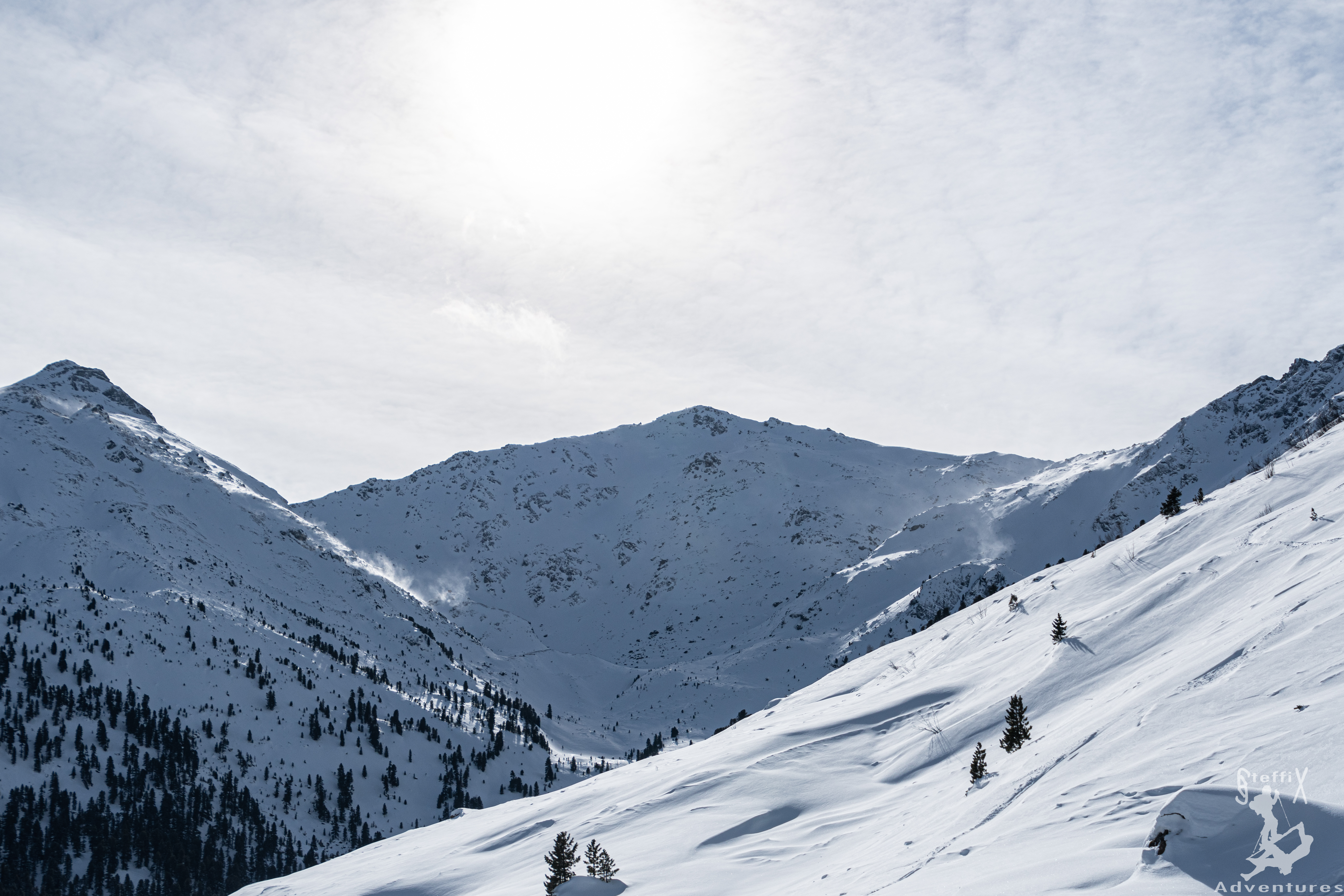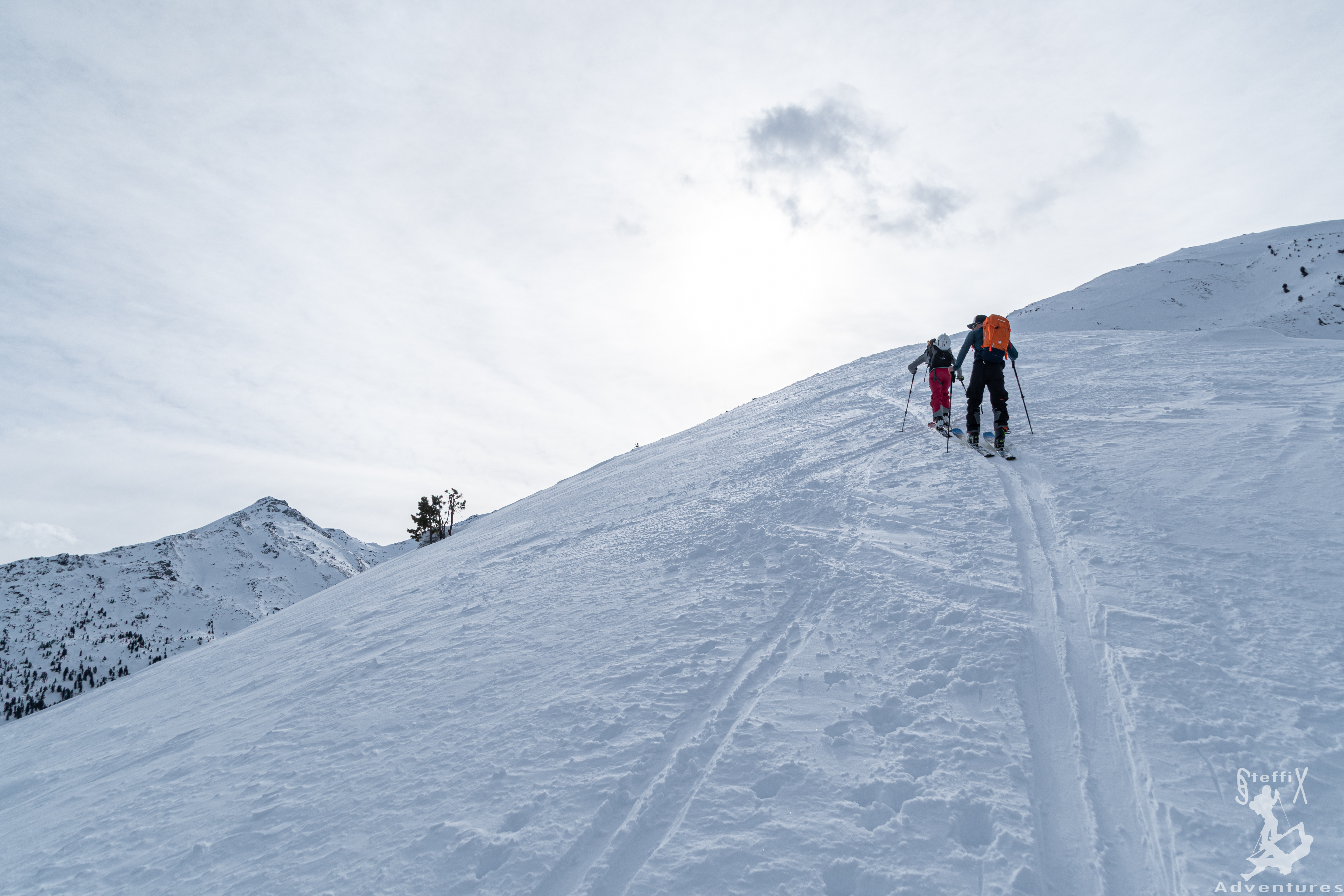 Am Gipfel angekommen schauten wir uns noch kurz eine Variante an, entschieden uns aber dann dagegen, genauso wie gegen die Gipfeljause. Viel zu kalt hier oben bei dem Wind! Bei der Abfahrt hatten wir alle ein Firstline – nur war diese gekennzeichnet von sehr variablem Schnee. Aber gut, in einem anderen Winter, hätten wir die Abfahrt wahrscheinlich gar nicht so schlecht gefunden, sind dieses Jahr einfach verwöhnt 😊