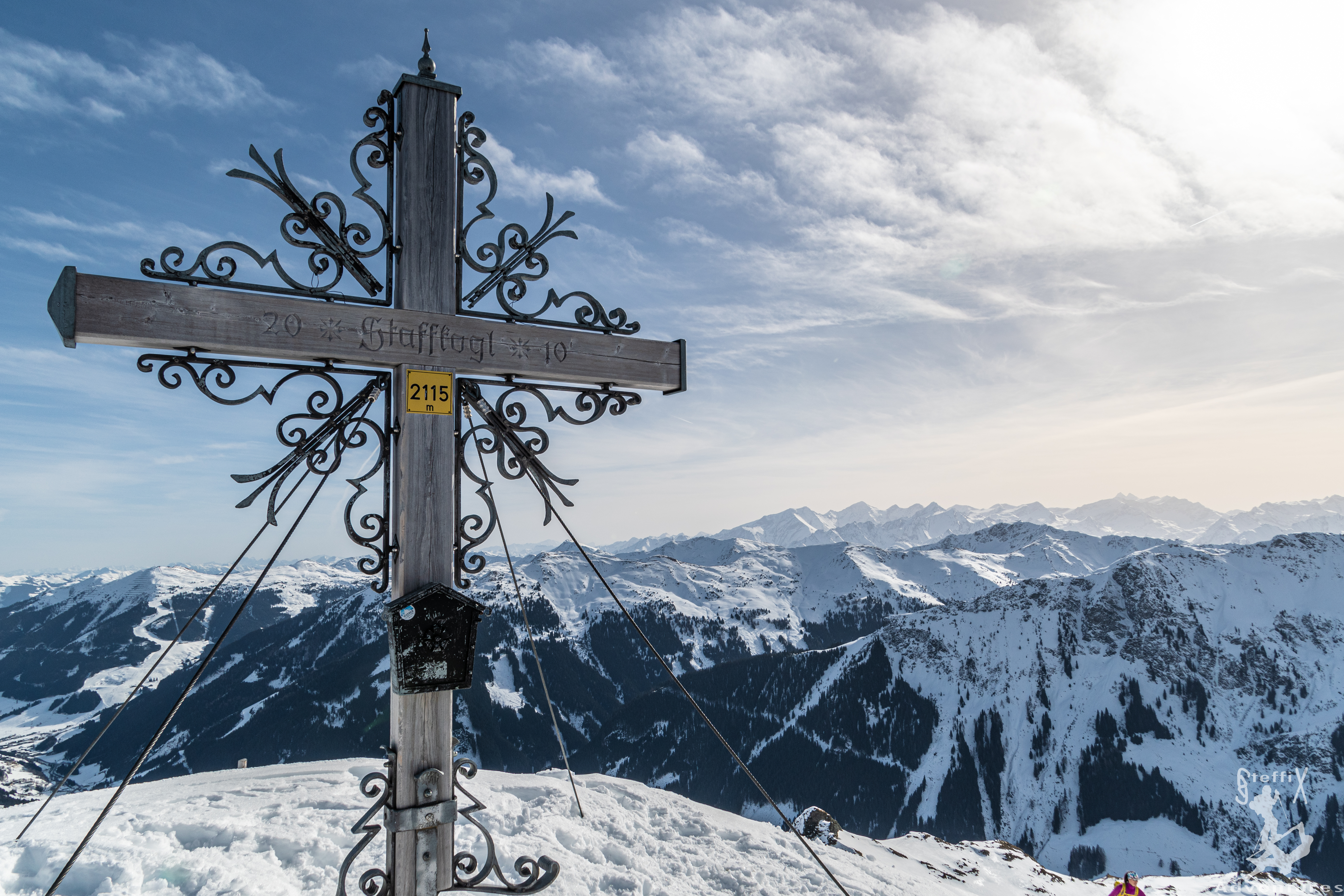 Am Samstag war das Wetter traumhaft schön und die Temperaturen glichen eher denen im April. Wir entschieden uns für den südseitigen Staffkogel und kamen daher ganz schön ins Schwitzen. Gleichzeitig genossen wird aber in vollen Zügen die warmen Temperaturen und die ungetrübte Sonne, haben wir diesen Winter ja schon sehr viel gefroren. Der Grenzberg zwischen Tirol und Salzburg bietet eine wunderschöne Aussicht und die Abfahrt war bei weichem, aber nicht zu tiefem Schnee richtig spaßig.