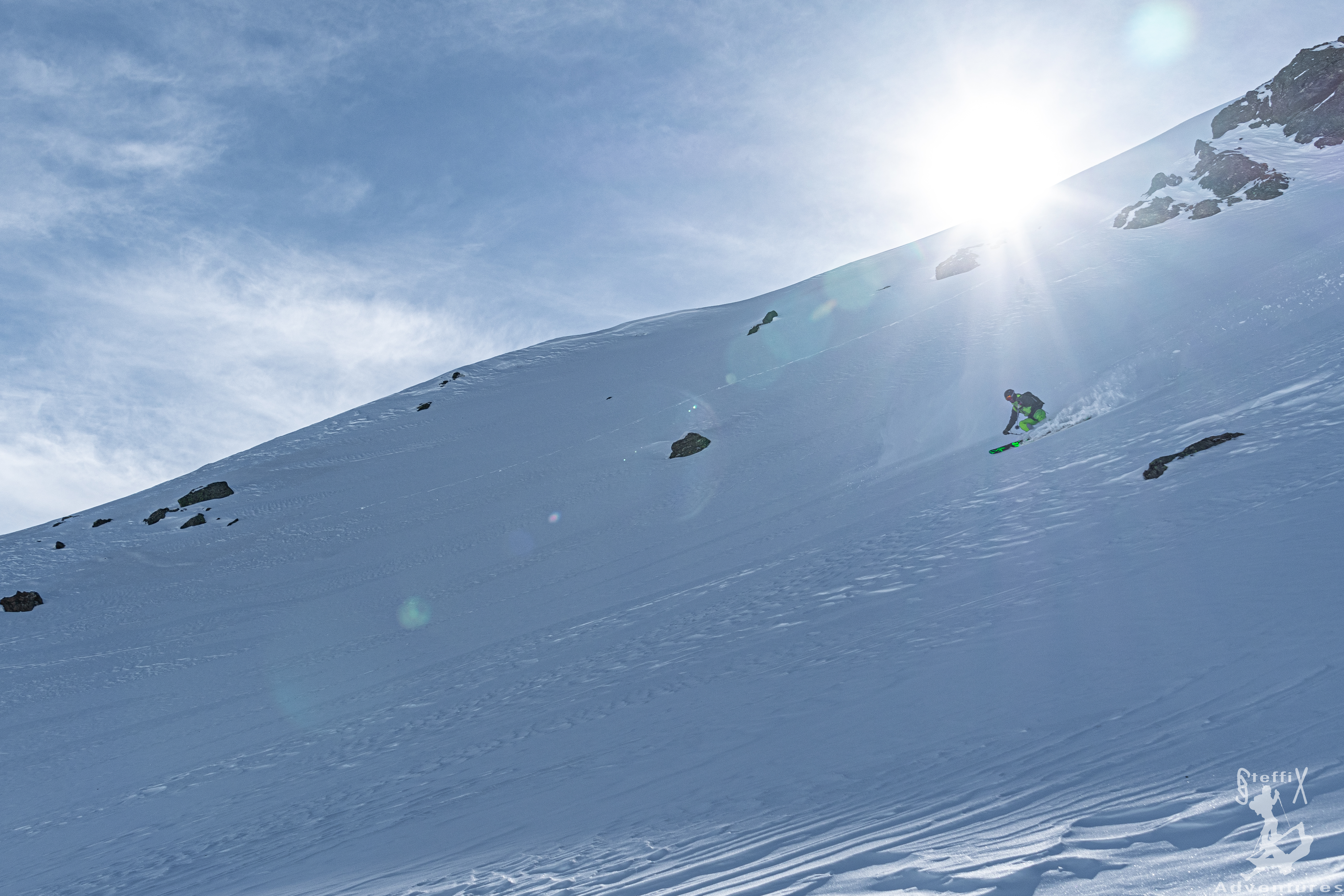 Die Hochdruck-Phase will nach wie vor nicht so ganz enden und langsam wird es schwierig, Pulver anstelle von Firn zu finden. Es wurden mal wieder die Karten on- und offline studiert und es wurde der Nord-Ost-Hang des Wenten als geplantes Ziel ausgemacht. Um der tageszeitlichen Erwärmung zuvor zu kommen trafen wir uns früh mit einem Kollegen am Parkplatz der Potsdamer Alm. Von hier ging es über die Forststraße die ersten Meter in Richtung Fotscher Bergheim. Ziemlich zeitgleich mit uns erreichten zwei weitere Freunde, die mit einem E-Bike den wenig aufregenden Start abkürzten, die dortige Gabelung. Auf der hier zu findenden Hinweistafel studierten wir die geplante Tour und stellten fest, dass der gedachte Aufstieg und die Abfahrt durch eine Schutzzone verlaufen. Drauf pfeifen oder Folge leisten? Wir waren etwas unsicher und entschieden uns zunächst einmal weiterzugehen und uns im Laufe des Weges zu entscheiden. Bei der Almind-Alm legten wir dann fest, dass wir uns an die Zone halten werden und auf das Fotscher Windegg (2577m) ausweichen werden, da wir dort ohnehin noch nie waren. Zum Glück waren wir eine große Gruppe und unsere Kumpanen konnten an ihrer Idee festhalten und wir unseren Weg gehen, ohne, dass jemand alleine am Weg war. Für uns ging es also erst etwas nach Norden, um dann eine Schleife nach Westen zu gehen und so uns immer weiter dem Windegg zu nähern. Da eine Spur vom Vortag gelegt war, war die ohnehin leichte Orientierung überhaupt kein Problem. Zeitlich waren wir gut unterwegs und etwas erstaunt, dass wir komplett alleine am Weg waren. Oben auf dem Grat sahen wir dann einige Gämsen nach Futter suchen. Sie waren also doch nicht in der Schutzzone 😊 Wir prägten uns bereits beim Aufstieg die direkte Einfahrtsvariante vom Gipfel ein, da diese noch unverspurt und ziemlich gut aussah. Den Gipfel des Windeggs genossen wir dann in absoluter Einsamkeit und bei angenehmen Temperaturen. Erst als wir uns nach einiger Zeit an die Abfahrt machten, trafen oben noch weitere Tourengeher ein. Für uns ging es aber bereits in den steilen oberen Bereich der Einfahrt und wir waren happy über den immer noch recht pulvrigen und weichen Schnee. Wir zogen unsere Bahnen und unten gab es dann auch noch feuchten Schnee, der ebenfalls super zu fahren war. Das Beste aus beiden Schneewelten für uns 😊 Bei der Alm, trafen wir unsere Freunde wieder, die es ebenfalls sehr gut erwischt haben. Gämsen haben sie auf ihrem Weg keine angetroffen. Wir sonnten uns noch bei Temperaturen, die sonst im April bei Skitouren normal wären und ärgerten uns, kein Radler griffbereit zu haben. Das gab es dann erst im Schatten am Parkplatz. Besser spät als nie.