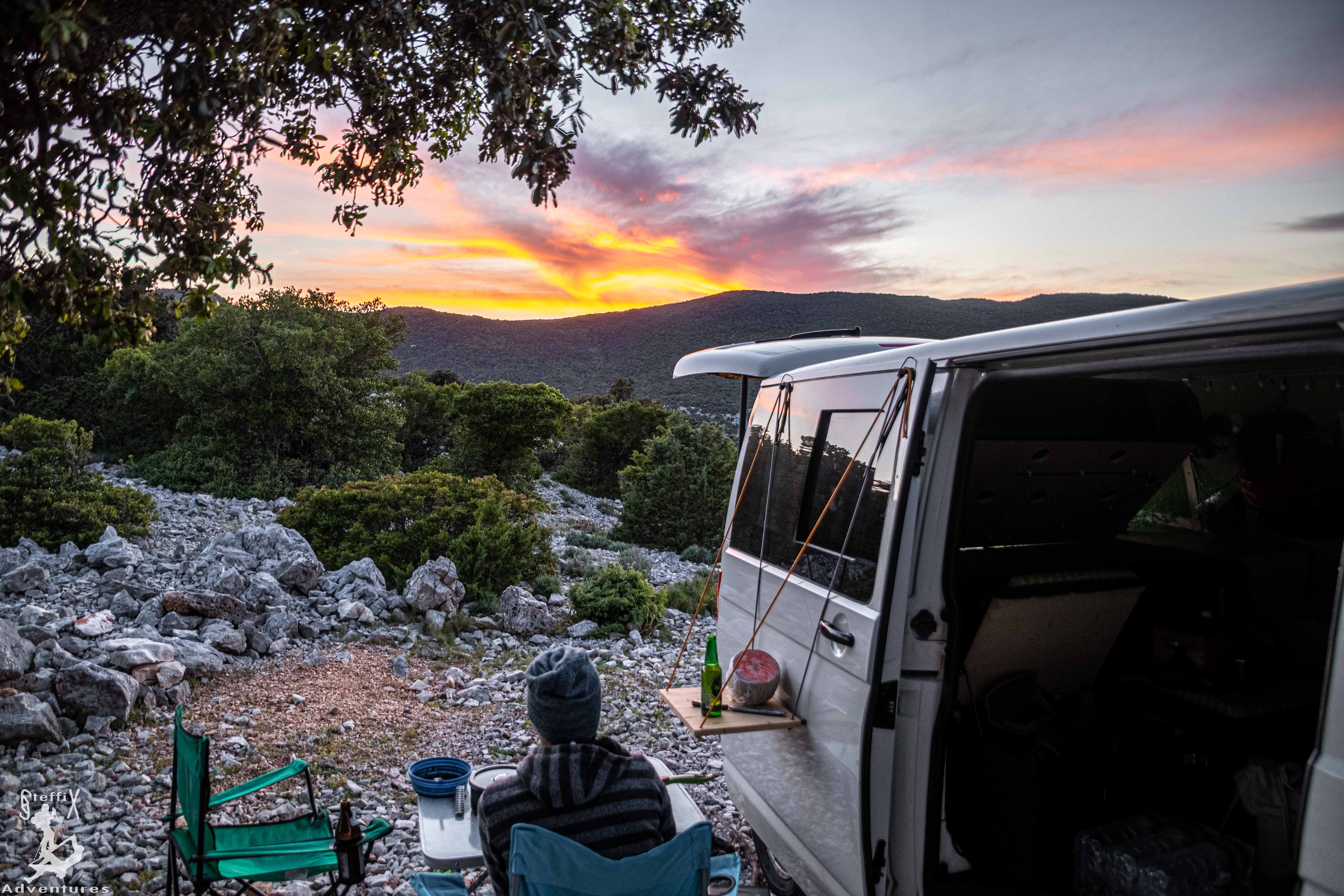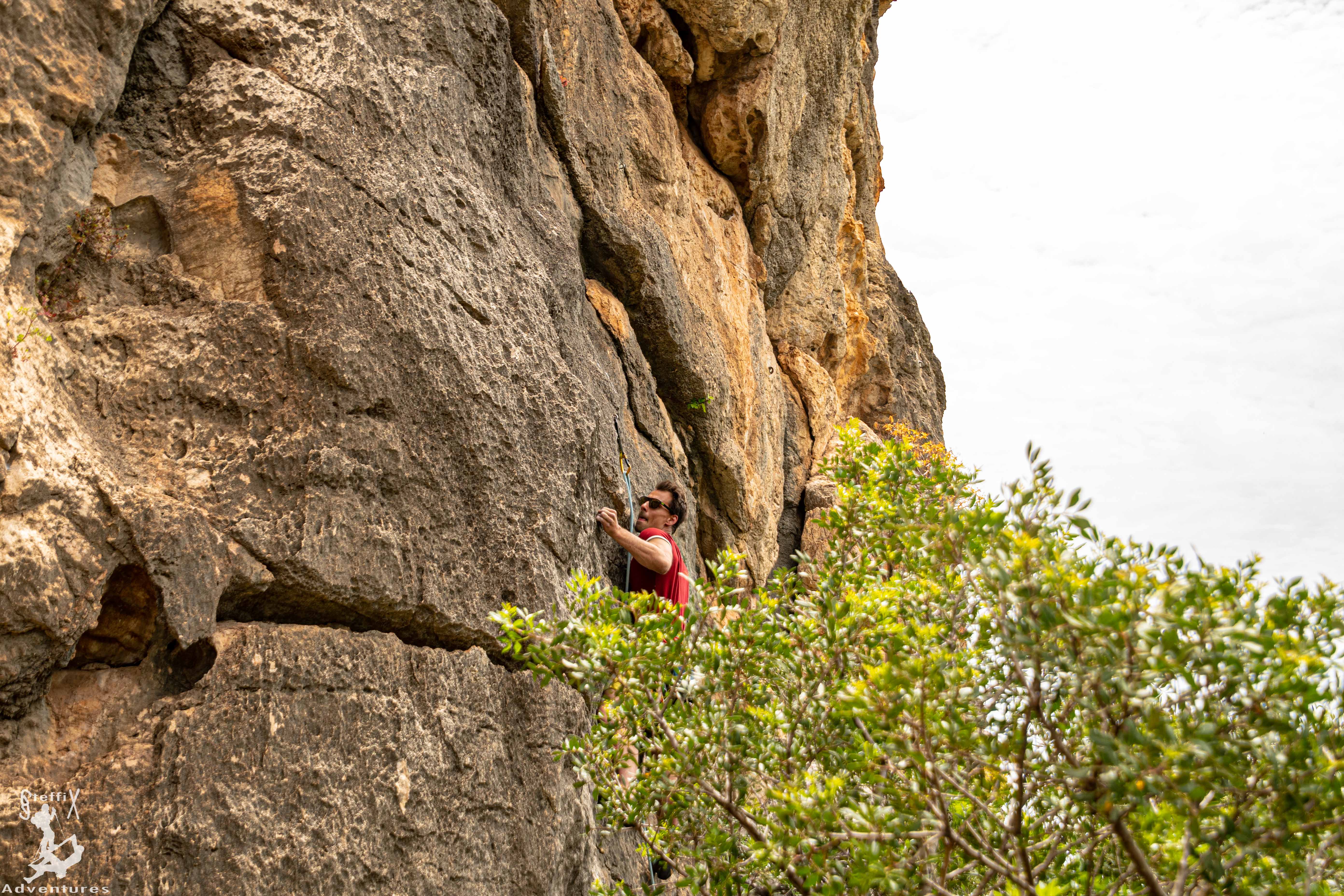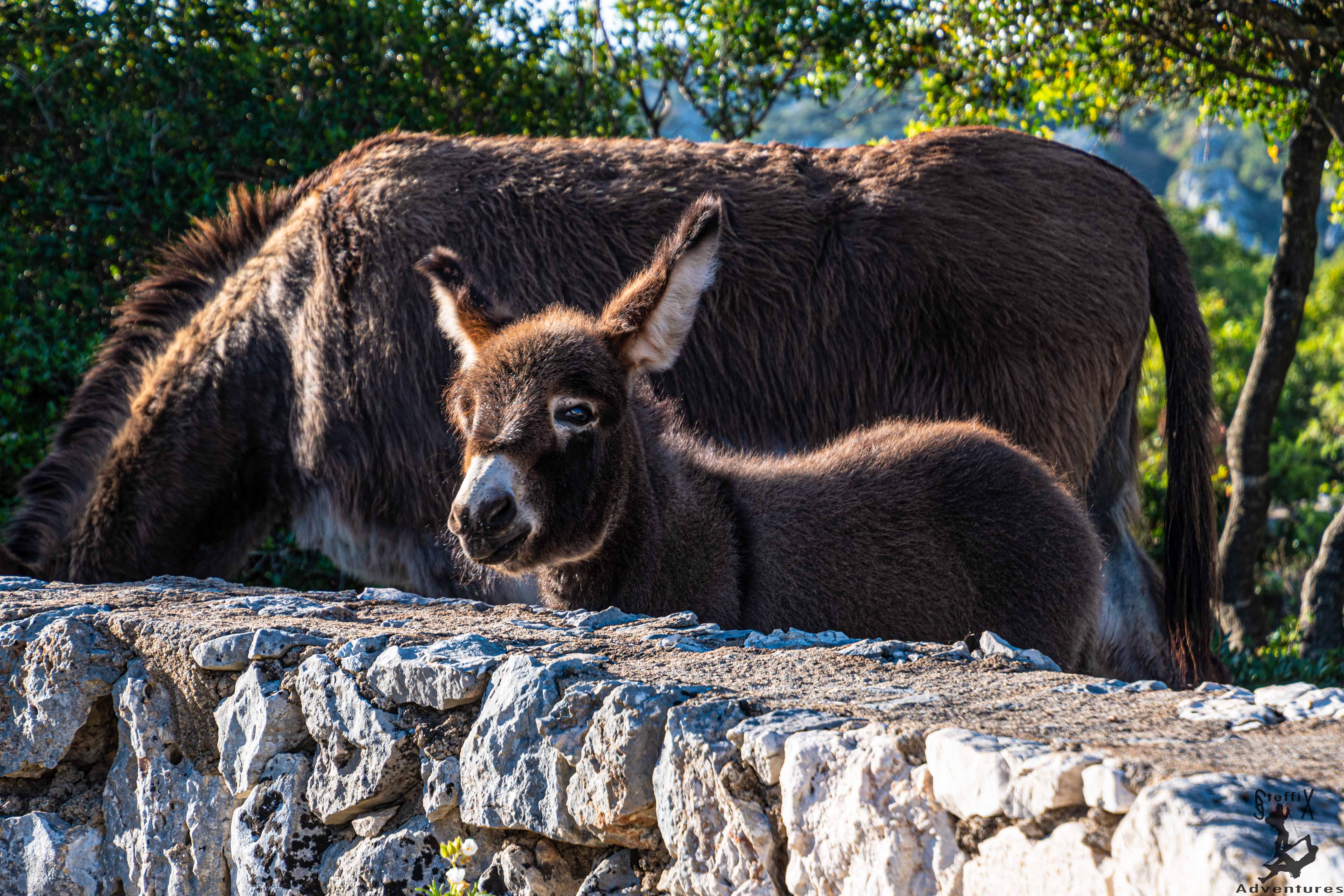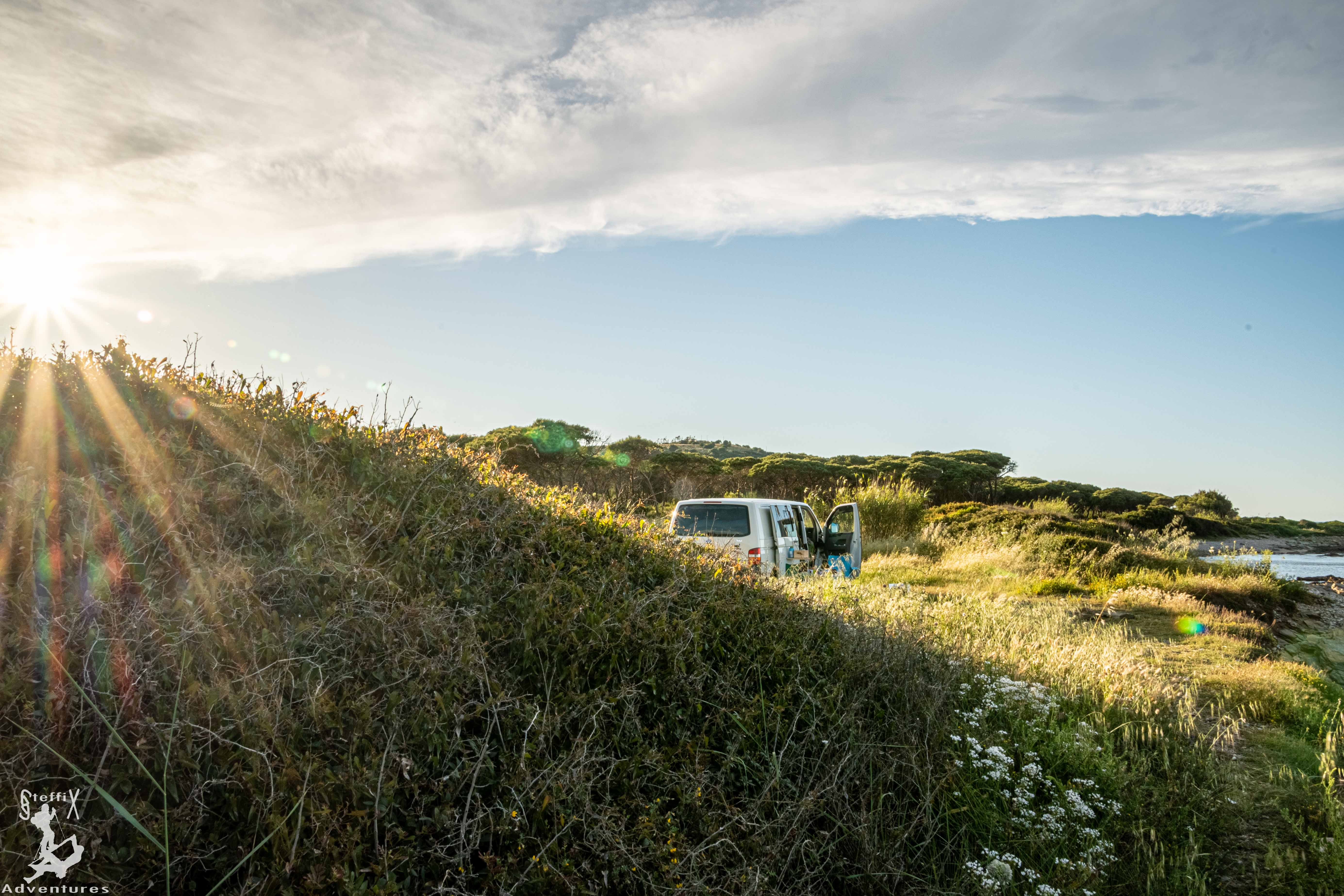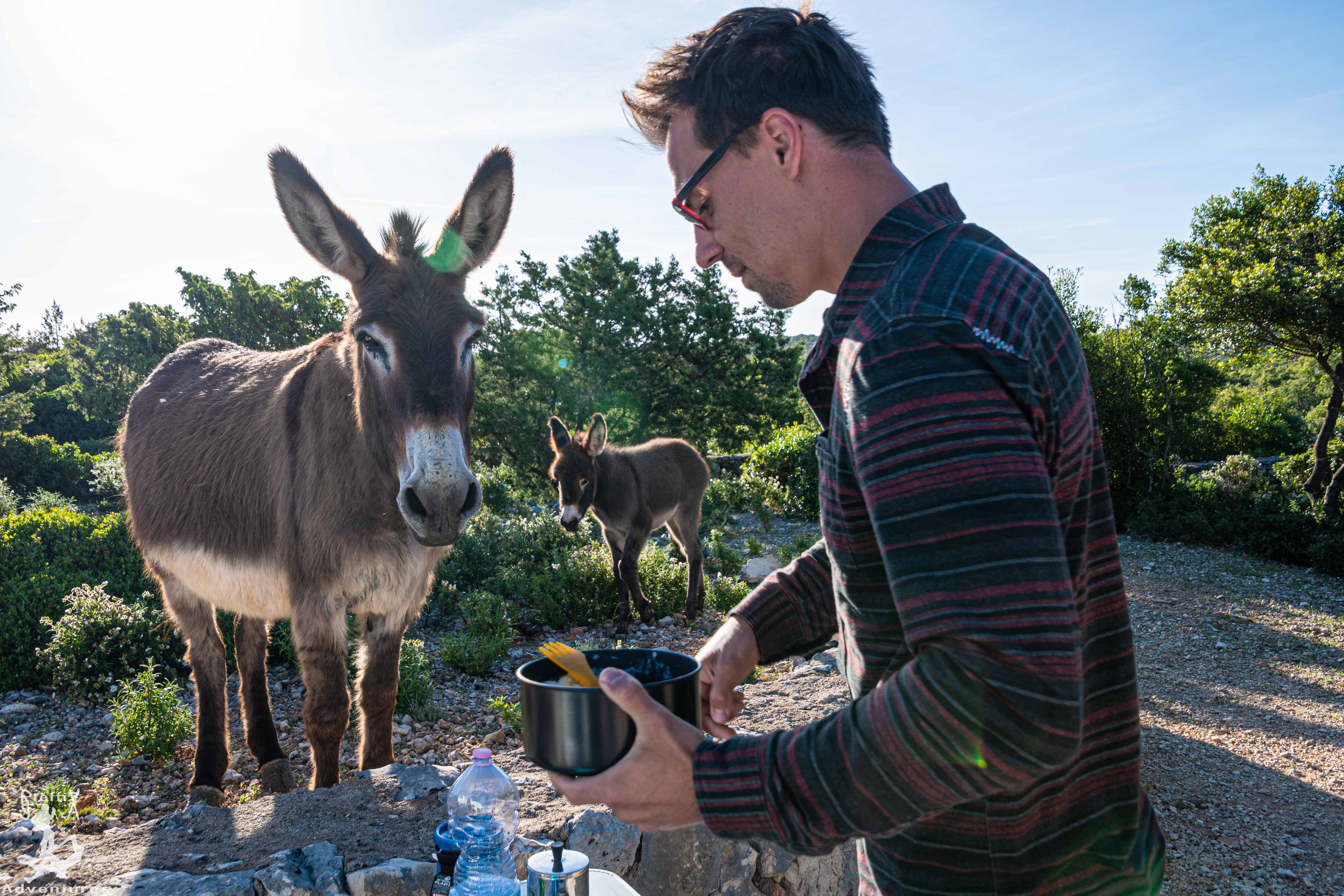 Da wir nur eine Woche Zeit hatten, hielten wir uns vorwiegend im Nordosten Rund um die Gegend Cala Gonone auf. Die Woche Sardinen war gekennzeichnet von tollen Kletterspots, türkisblauem Meer, Stränden, wenigen Leuten, Sonne, Wind, toller Landschaft und durchwegs schönen Schlafplätzen (ausschließlich direkt in Cala Gonone war es etwas schwierig). Wassertechnisch ist es allerdings nicht immer so einfach und so empfiehlt es sich, genug Wasser, auch für die Körperpflege, im Supermarkt zu kaufen. Besteht etwas Süßwassermangel an den Schlafplätzen, kann man dafür das Glück haben von einer Eselmama mit Baby geweckt und beim Frühstück begleitet zu werden 😊 An den Restdays besuchten wir bekannte Spots wie die Cala Goloritze, welche eine wunderschöne und lohende Bucht ist, in der man es gerne mal einen Tag aushält, vor allem in der Vorsaison, wenn man die Bucht kaum teilen muss. Die ca. 400 Höhenmeter Ab- und dann Aufstieg waren perfekt für den Restday, so hat man sich doch bewegt, konnte aber vollends erholen.