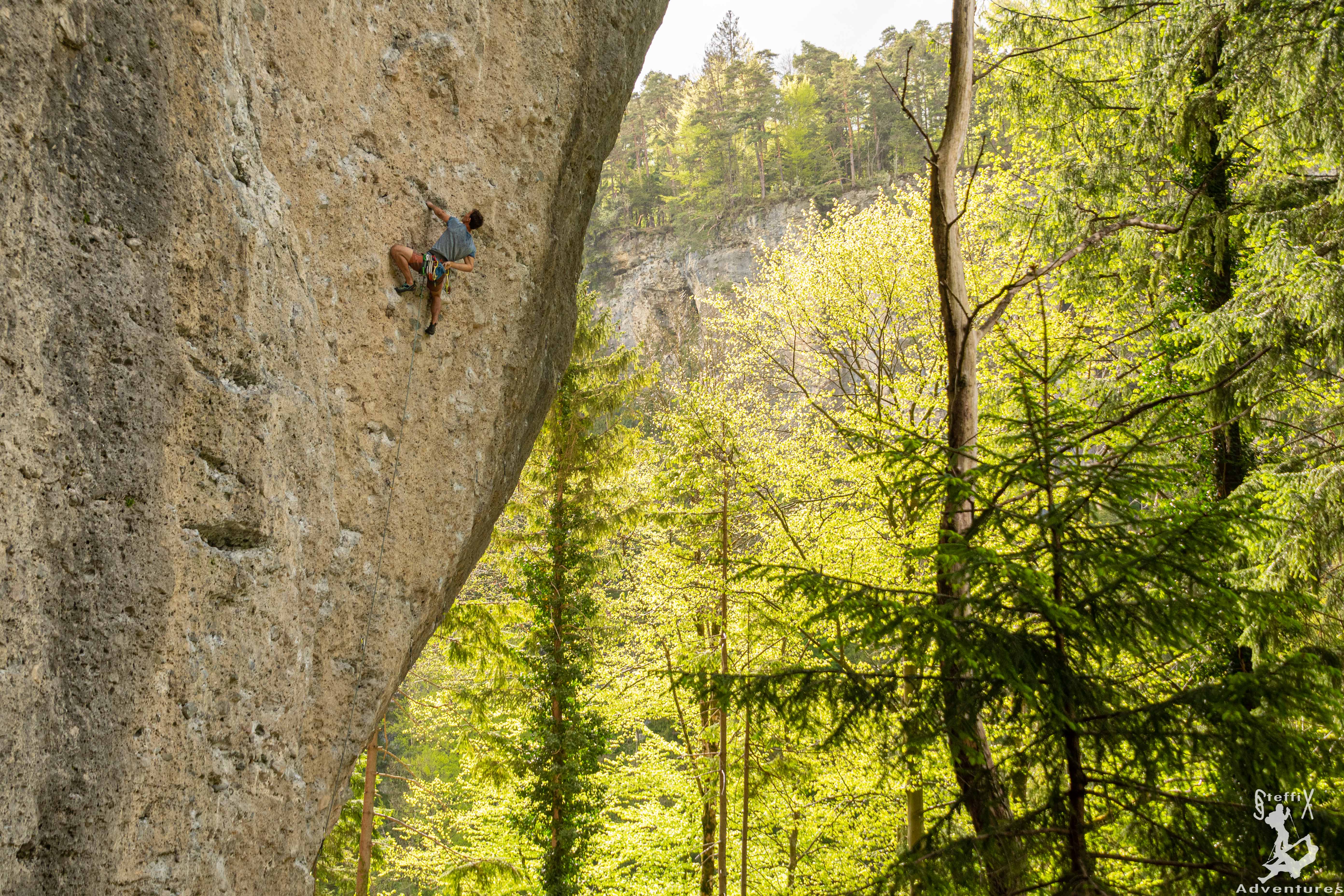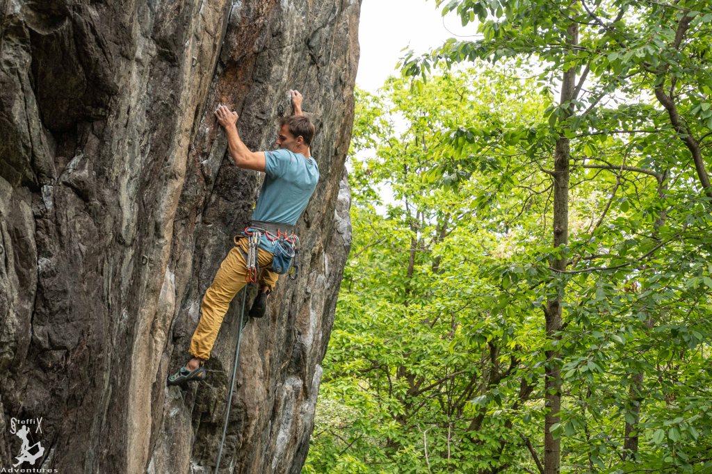 Am nächsten Tag (Mittwoch) ging es dann ganz gemütlich in die schöne Schweiz, das Wetter wurde immer besser und nach etwas Stau kamen wir im sonnigen und warmen Valle Maggia an. Erinnerungen an unseren ersten Urlaub wurden geweckt. Wir besuchten auch wieder den gleichen Campingplatz (Piccolo Paradiso) wie damals und genossen die nicht ganz so strengen Corona-Bestimmungen. Beim Abendspaziergang zu den Gumpen fanden wir einen sehr schönen Stock, den wir als Lampe für die neue Wohnung verwenden werden. Danach fing es dann zum Regnen an. Dieser Rhythmus blieb uns auch die nächsten Tage erhalten, jeden Abend gab es einen kurzen Schauer. Das störte uns aber nicht wirklich, da es untertags schön und trocken war und wir somit klettern und Gegend genießen konnten. Die Klettergebiete waren abwechslungsreich und von Plattenschleicherei bis zu steiler Wandkletterei war alles mit dabei. Was den Urlaub bereits auszeichnete war, dass wir ständig Dinge vergaßen, waren es einige Essentials aus Innsbruck, ging es im Urlaub weiter, was manchmal einige extra Meter zur Folge hatte, denn wer will schon sein Stativ im Klettergebiet lassen – aber Felix braucht ja eh Bewegung😊.
