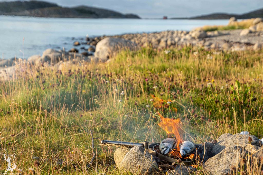 Von Bodo ging es dann etwas zügiger in Richtung Vega wo wir uns mit Steffis Bruder und Familie trafen und einen tollen Bouldertag mit traumhaftem Schlafplatz vor Einbruch des Sturms genossen. Zum Essen gab es in dieser Phase sehr häufig frisch gefangen Dorsch oder Makrele, einfach nur genial.
