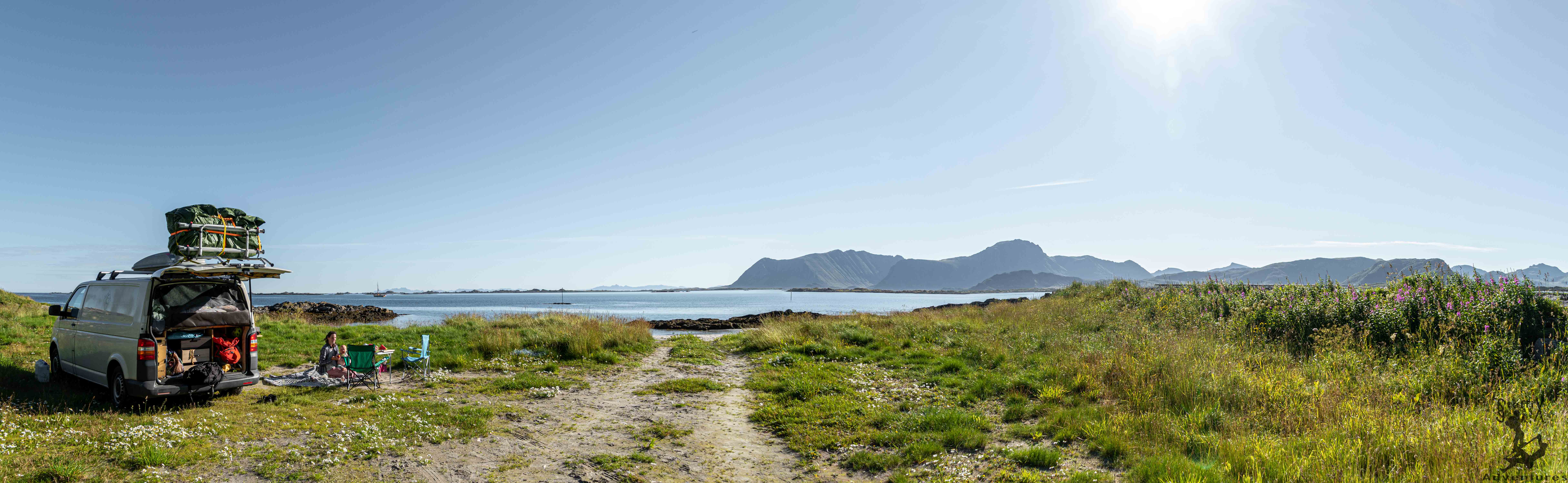 Die Lofoten zeigten sich von zwei Seiten – traumhaft schönes, wolkenloses fast sommerliches Wetter und tief nebelverhangen und stark verregnet. Beides hatte seinen Reiz, wobei das schöne Wetter schon grenzgenial war. Wir verbrachten dann mehr Tage als geplant auf den Lofoten, lernten unterschiedliche Autowerkstätten kennen, machten unplanmäßig lange Wanderungen, genossen den grandiosen Kletterfels, waren für ein Schlafverbotsschild verantwortlich, gingen baden und sogen den unverkennbaren Geruch des Stockfisches ein. Trotz kurzem Kulturschock, da die Lofoten tatsächlich überlaufen sind, fanden wir unsere ruhigen Plätze ab vom Schuss.